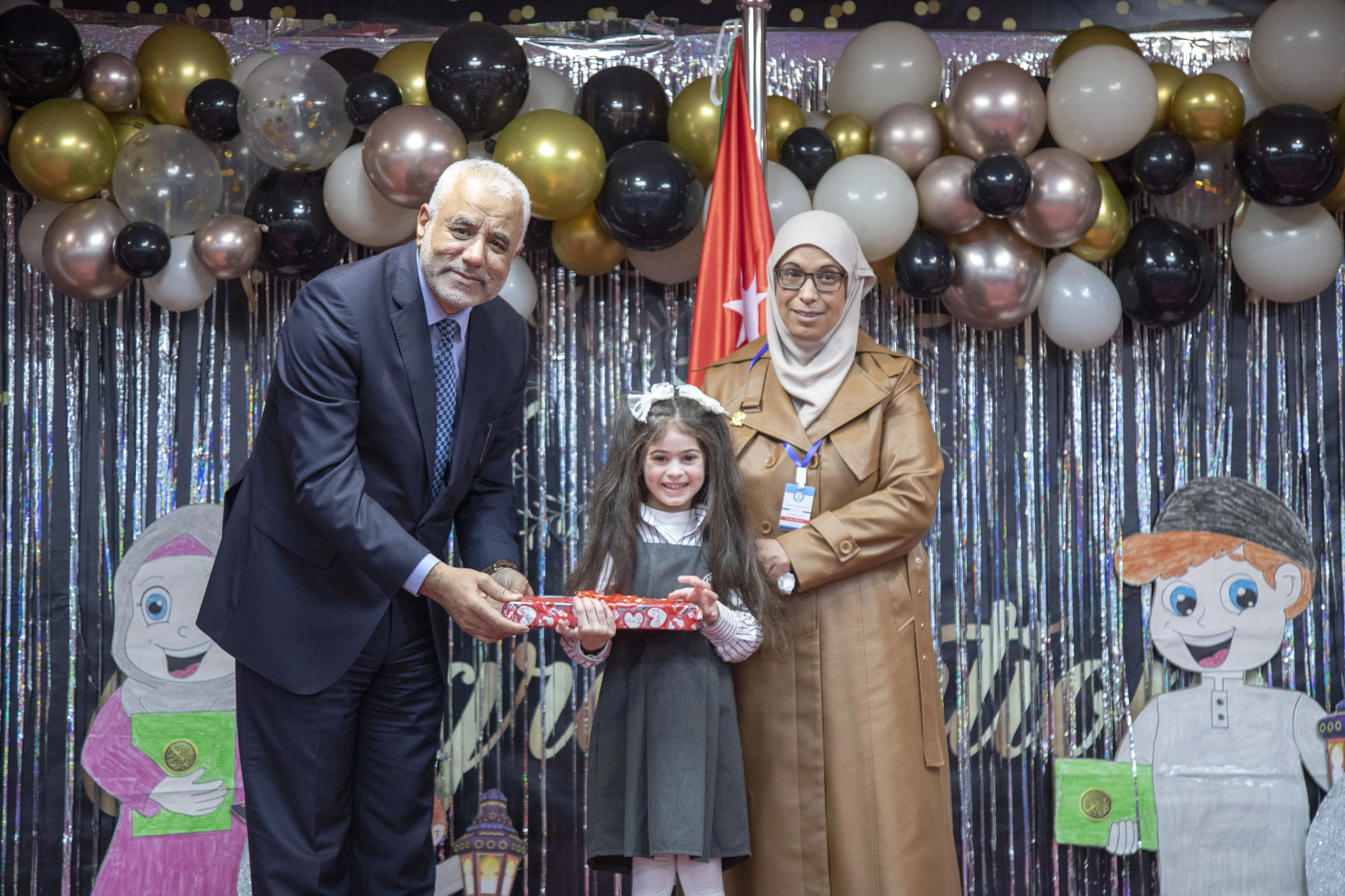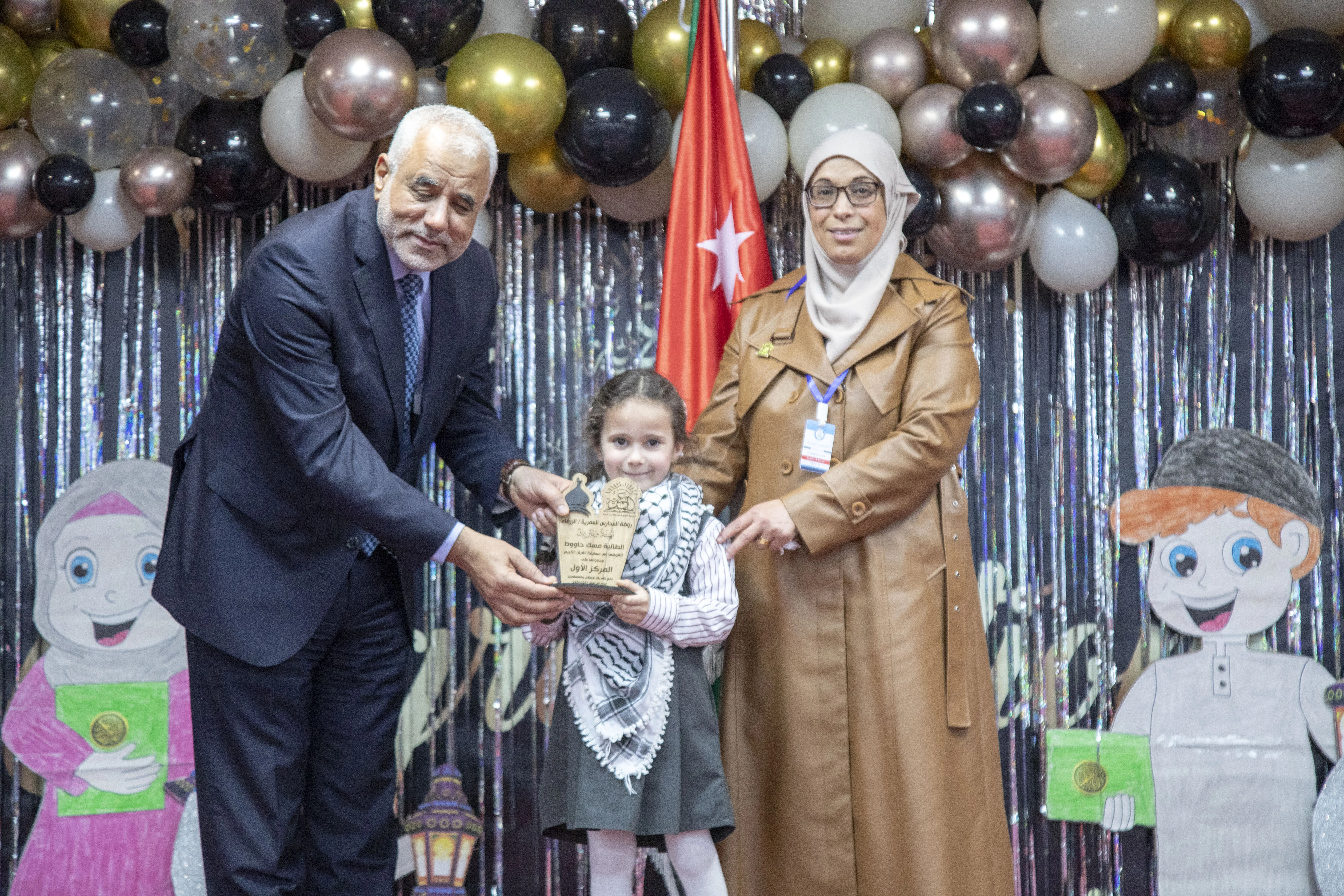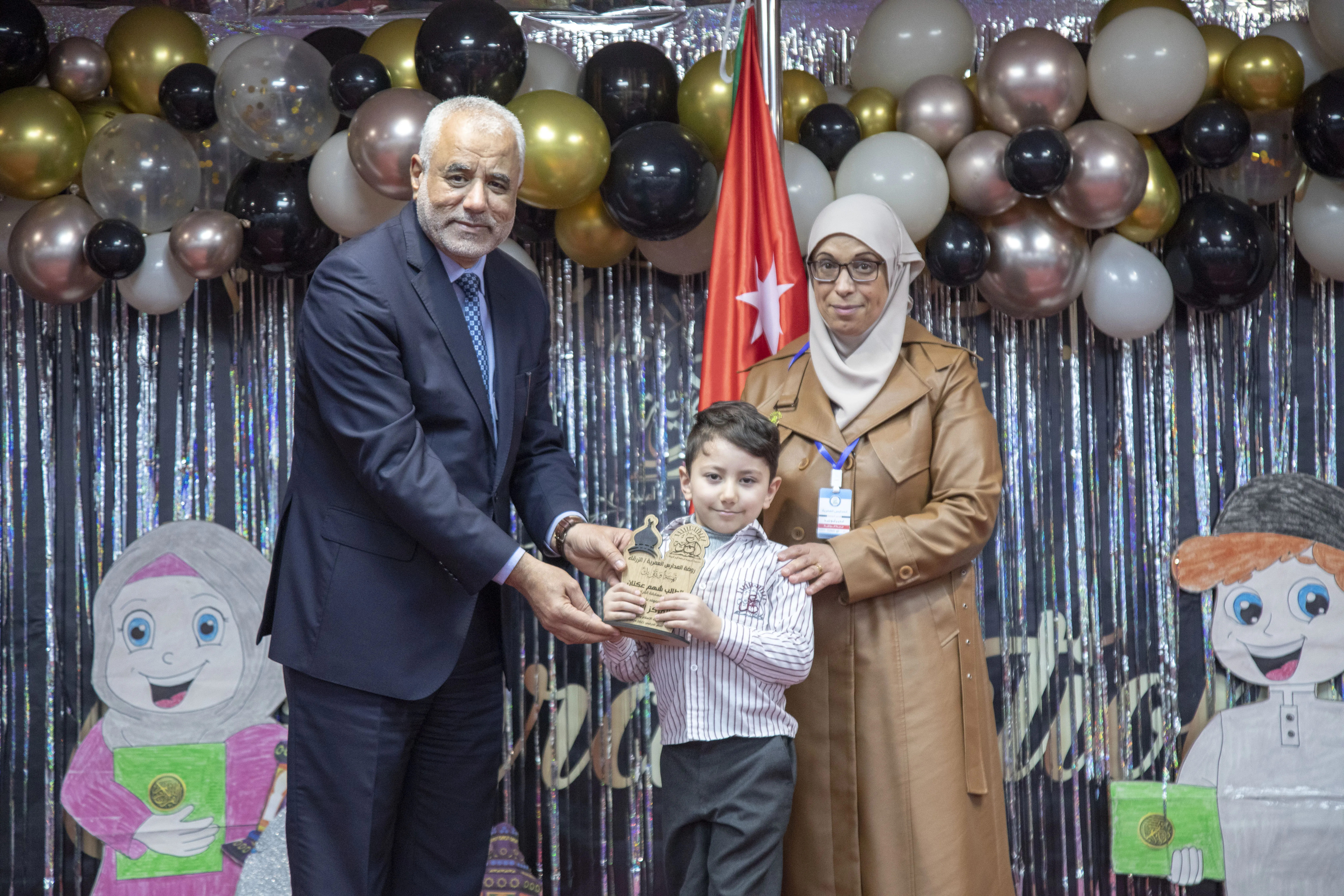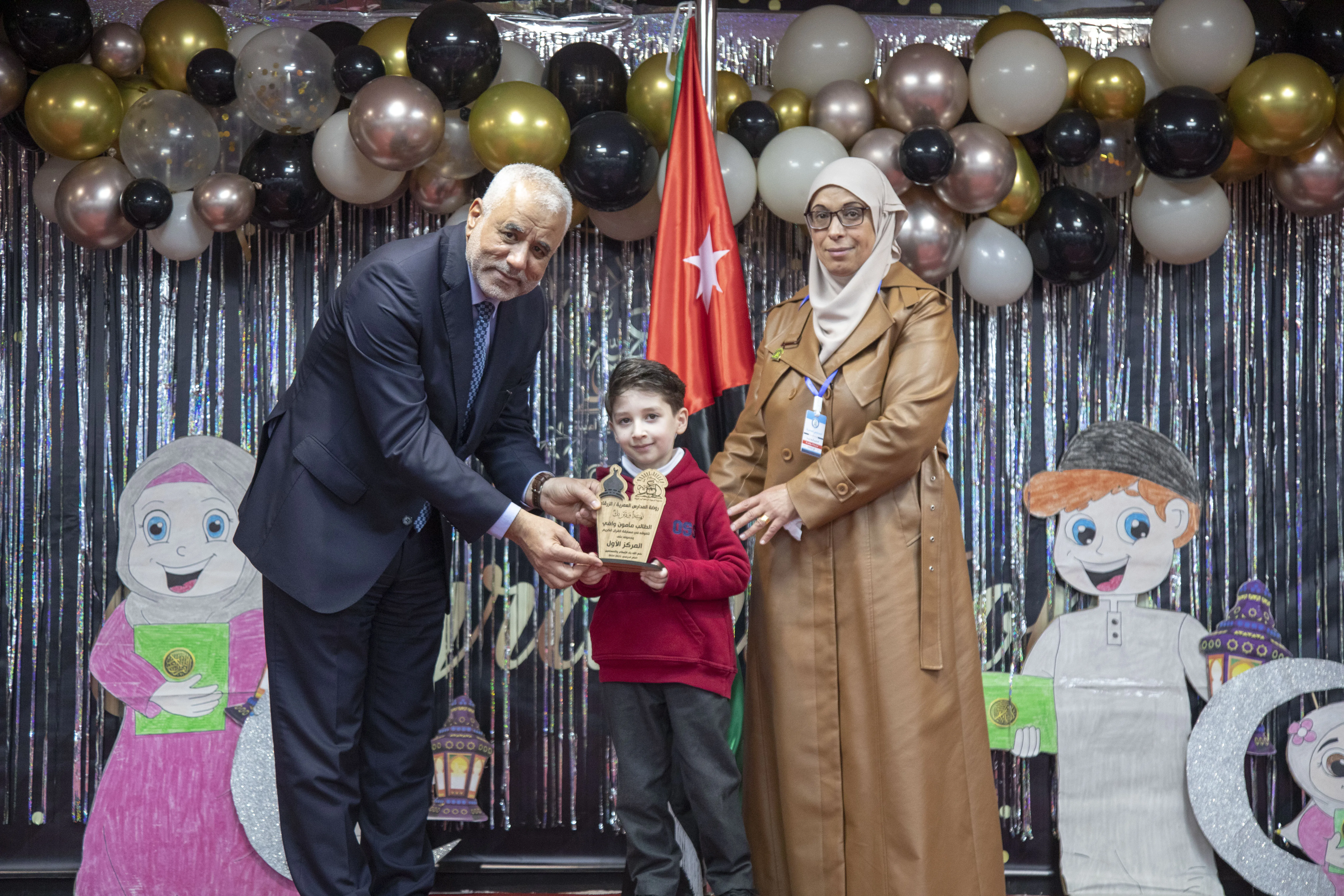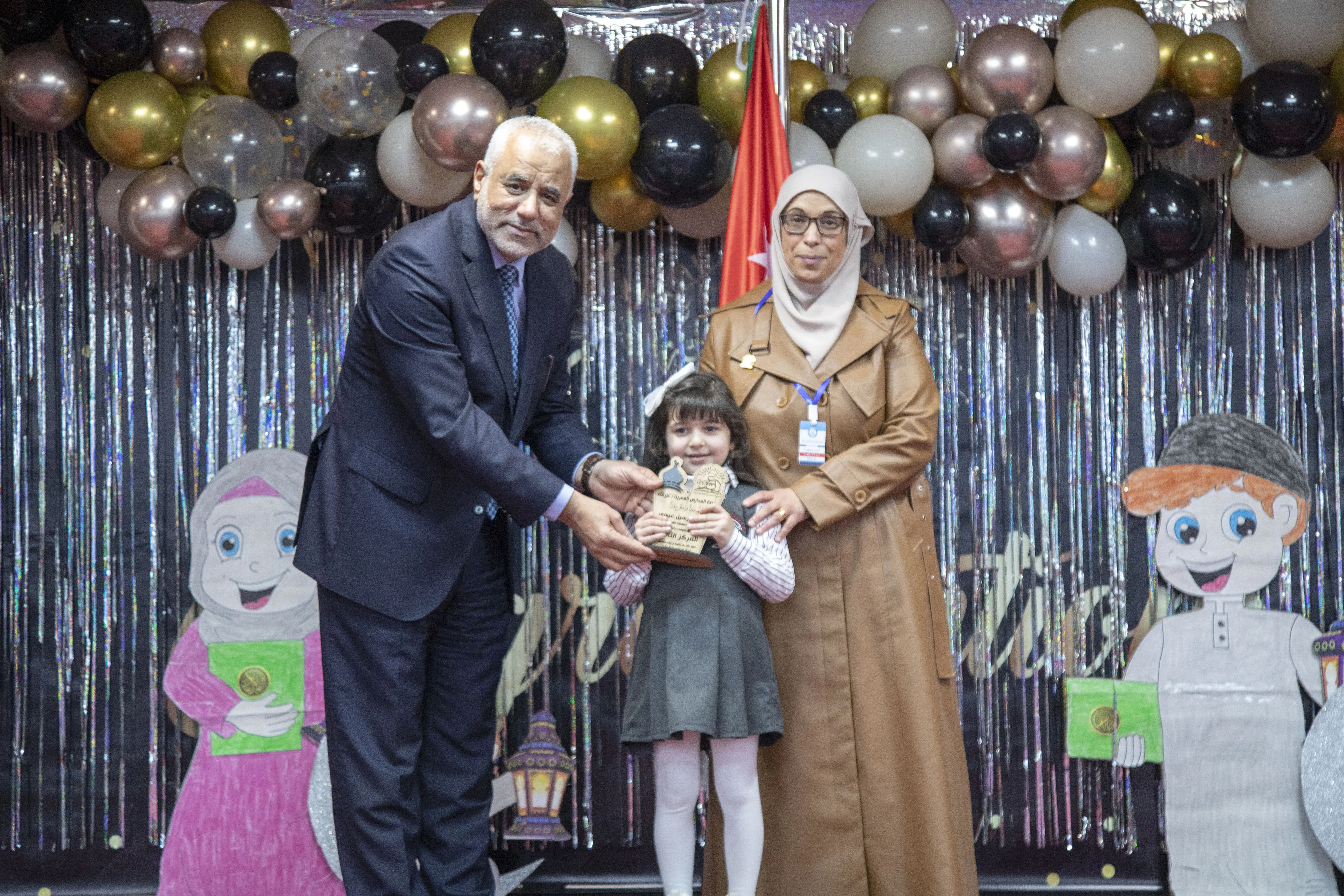 To instill the love of the Qur’an in our children’s hearts, and under the patronage of the General Director of Al-Omareyah Schools and the Kindergarten Principal, the students participating in the Qur’an and Hadith Competition were honored. Mothers were also presented with the Crown of Dignity in recognition of their efforts. Trophies and awards were distributed to the winning children.