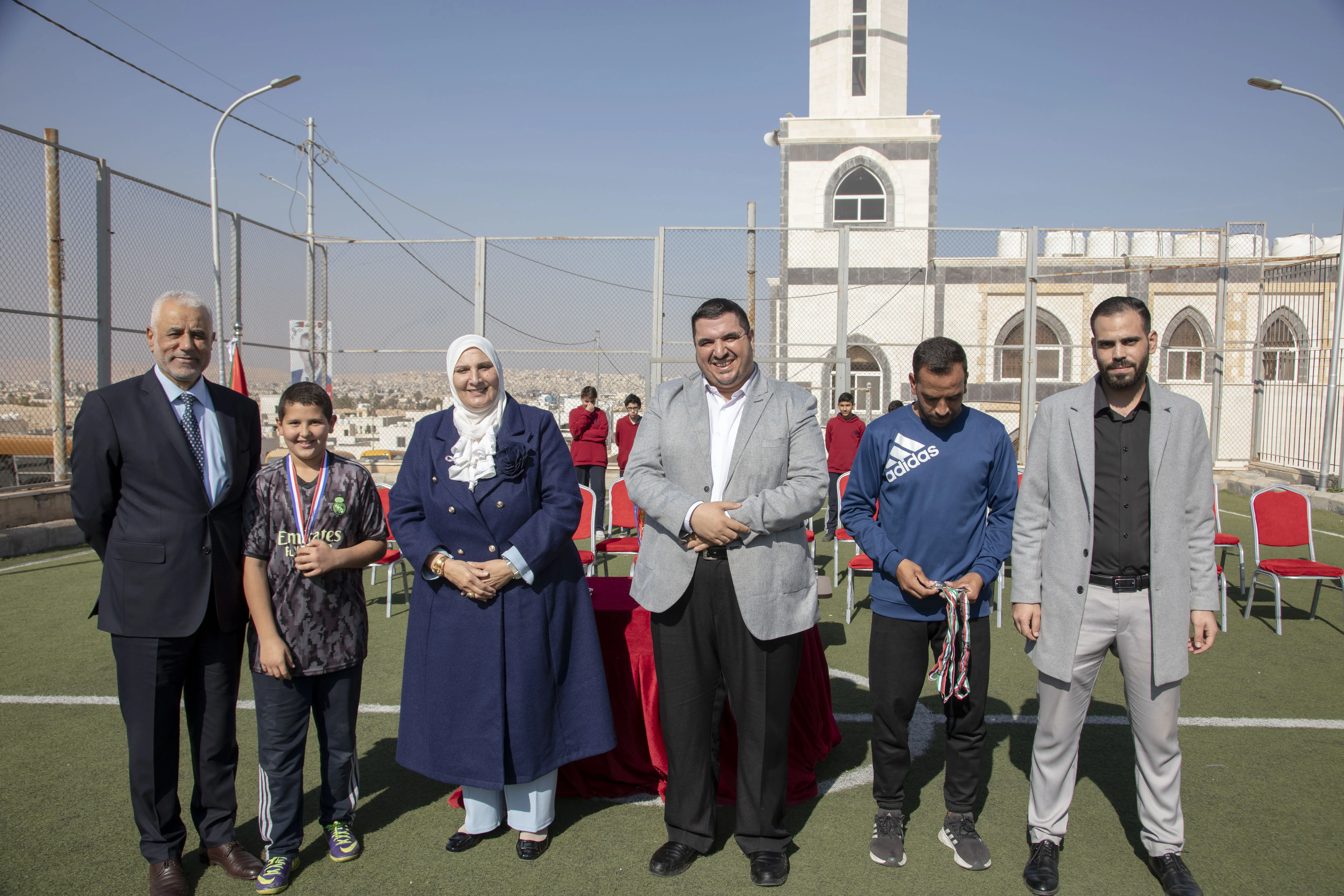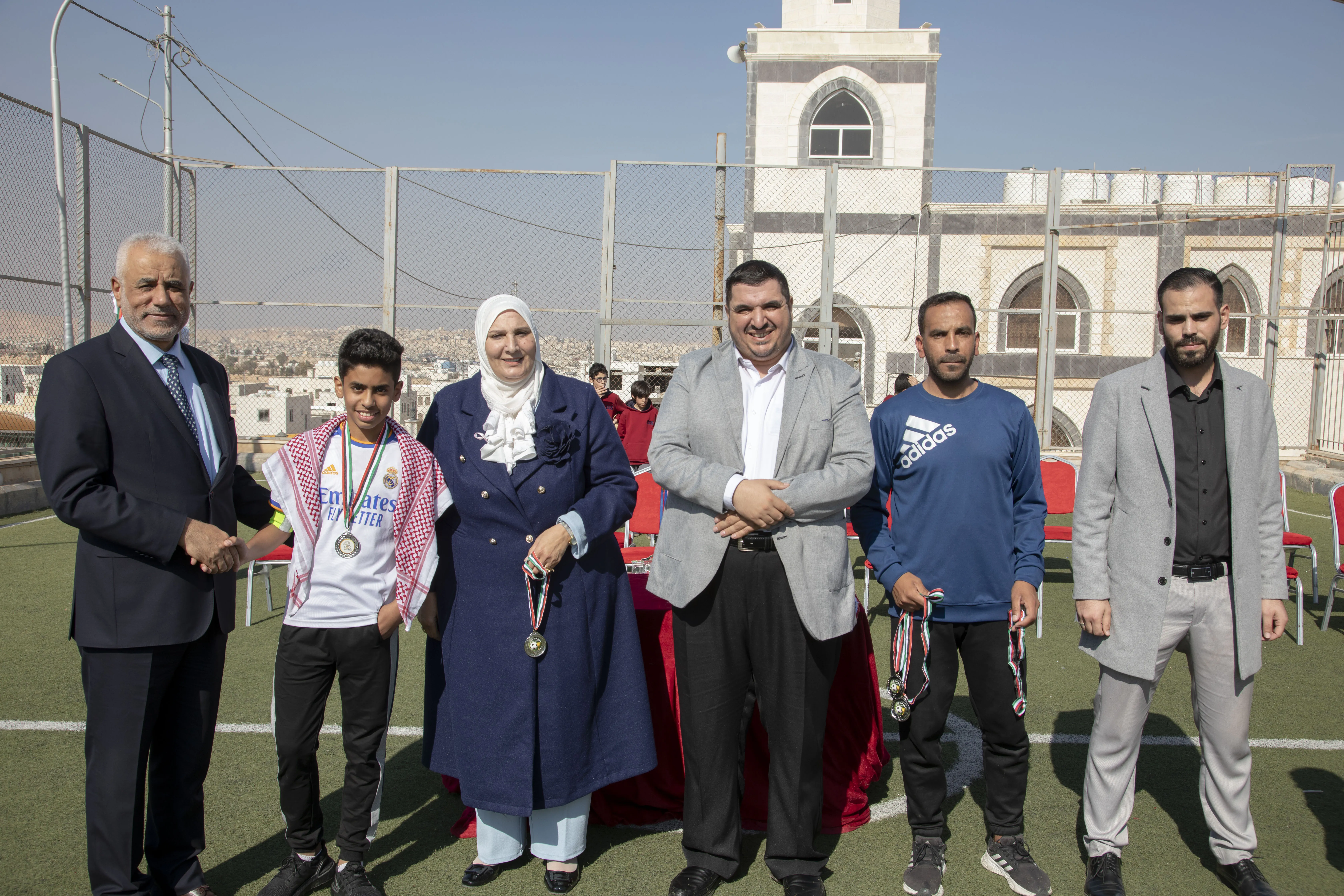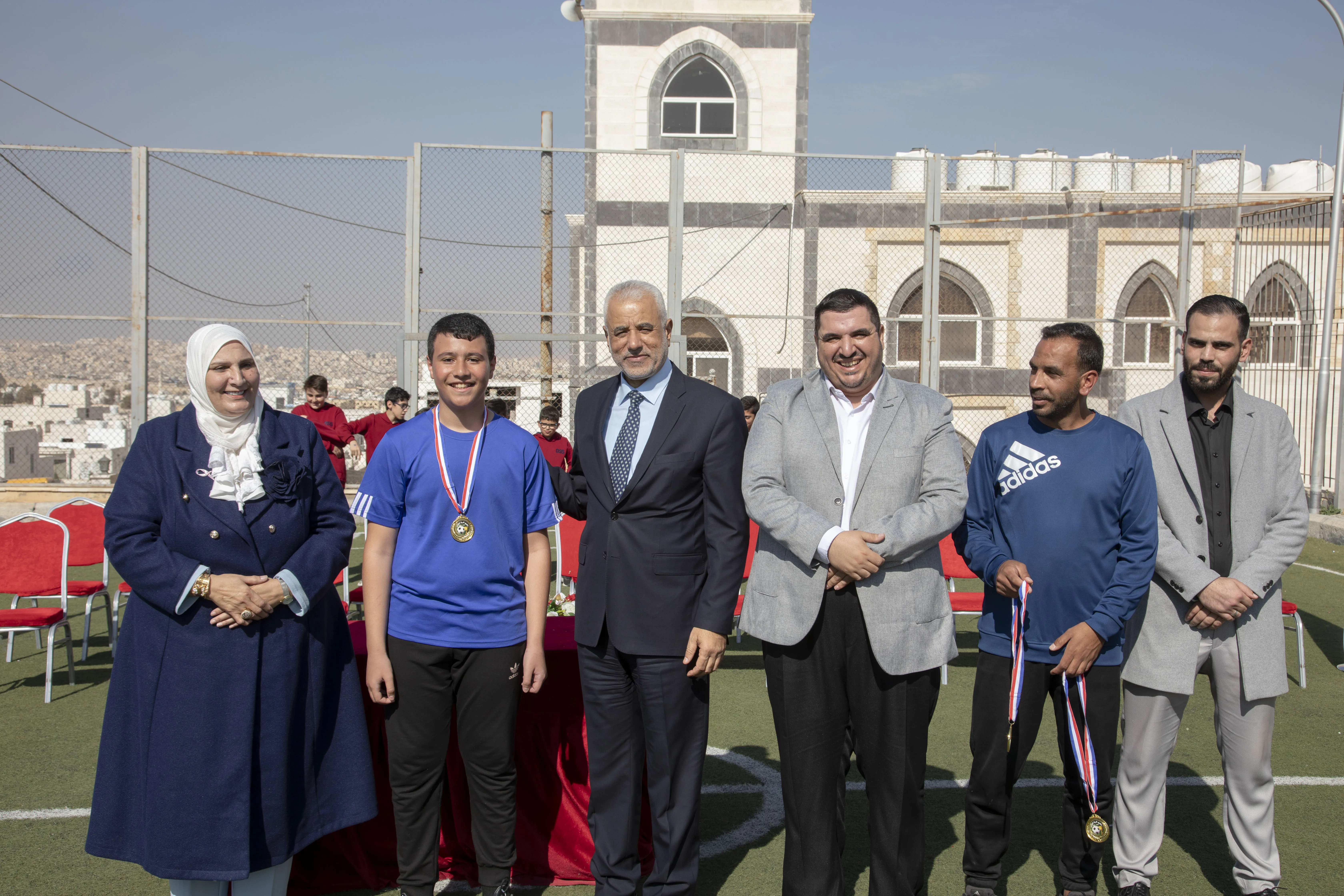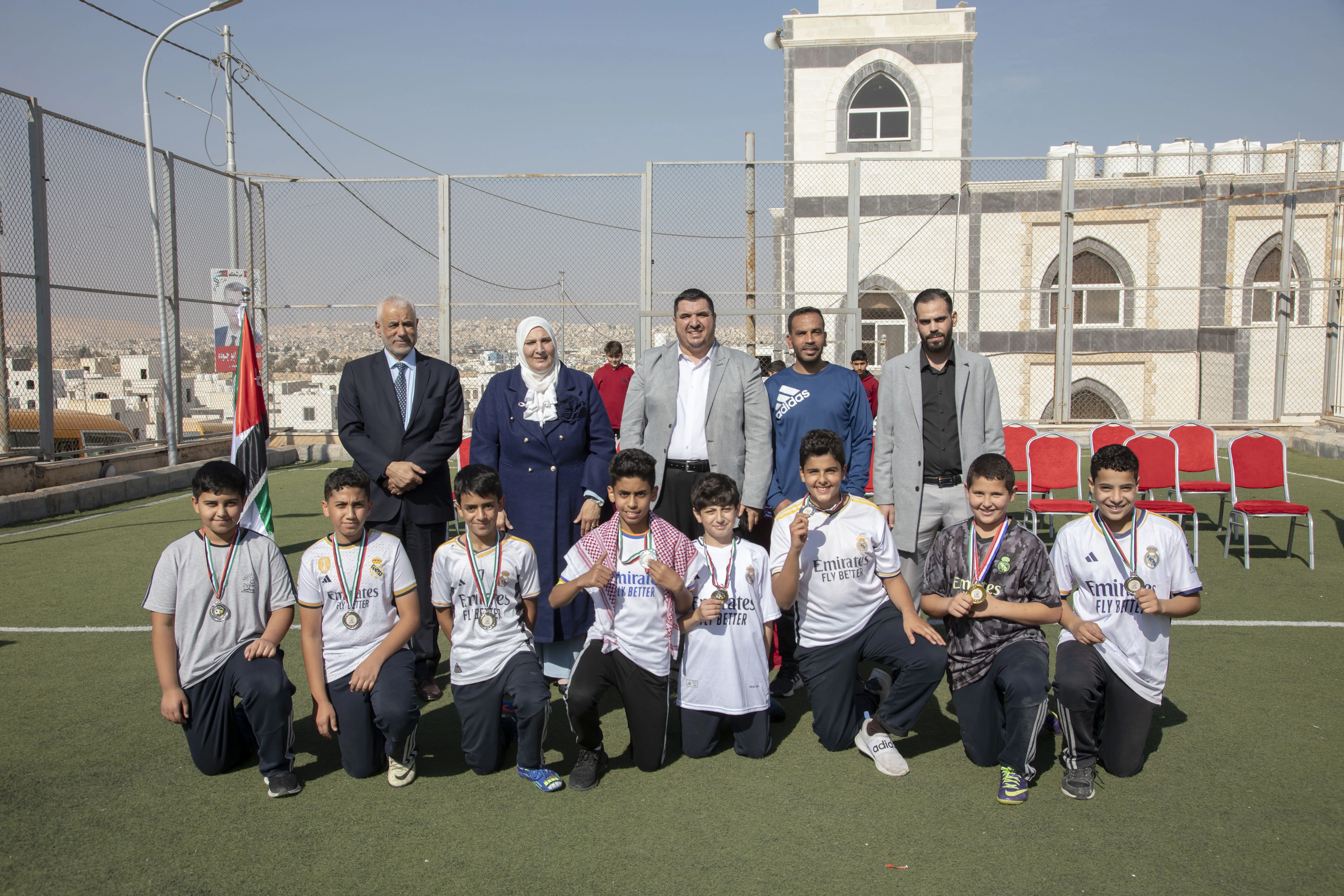 Amid a festive atmosphere, the 7th Grade "H" team was honored as the champion of the Al-Omareyah Champions League in football, under the gracious patronage of Dr. Hayam Ramadan, Board Member of Al-Omareyah Schools. This achievement came after a strong competition with the 7th Grade "J" team.
