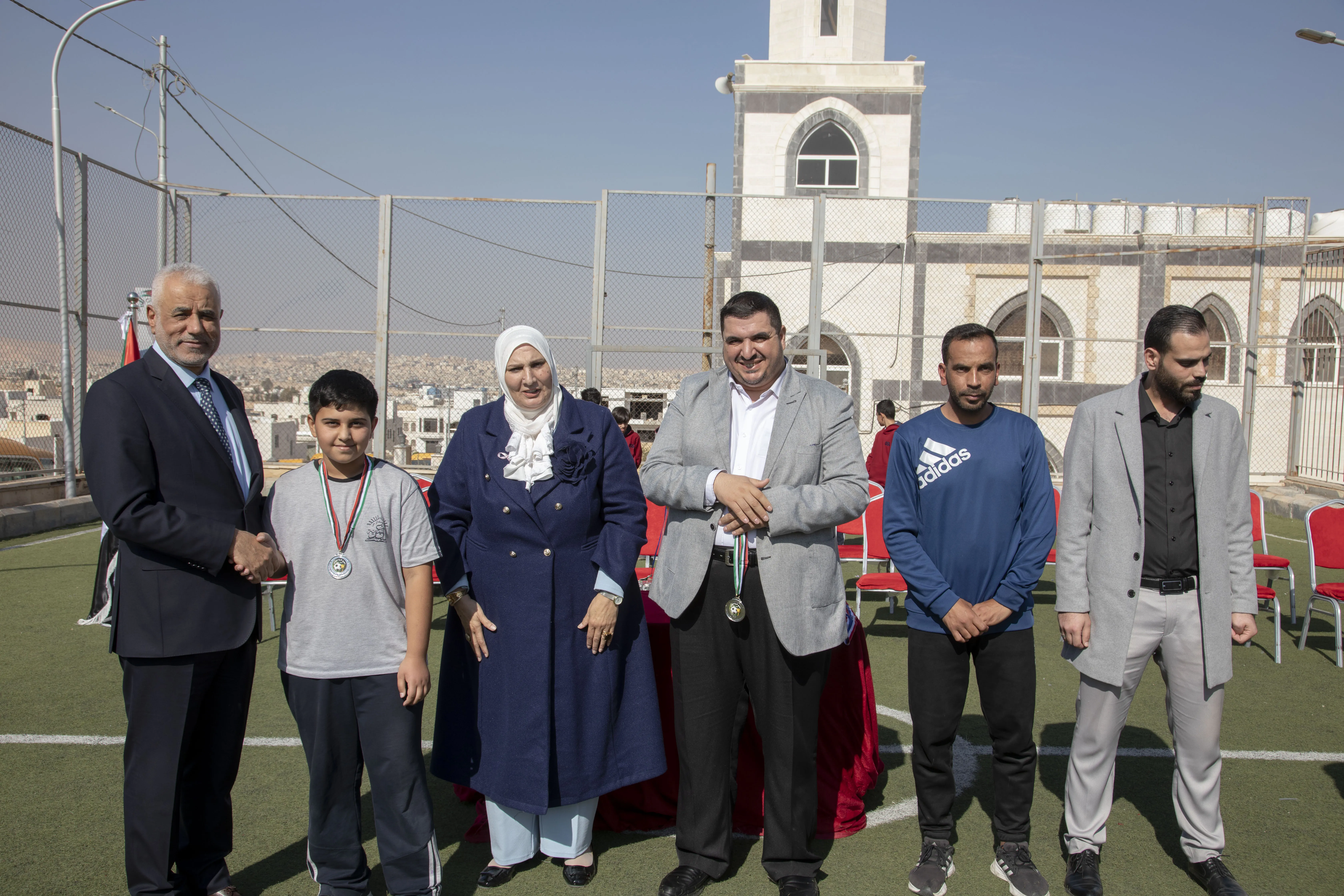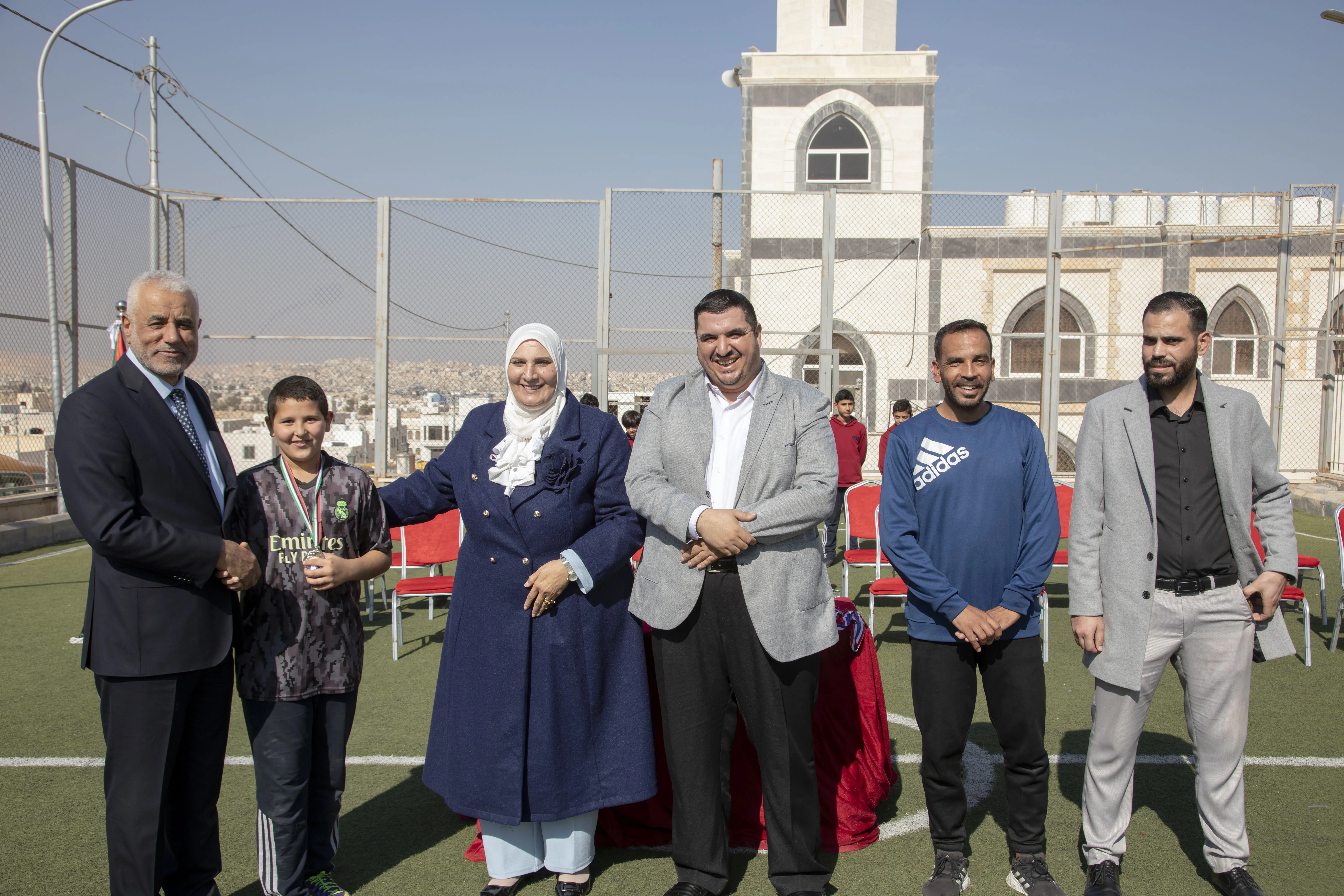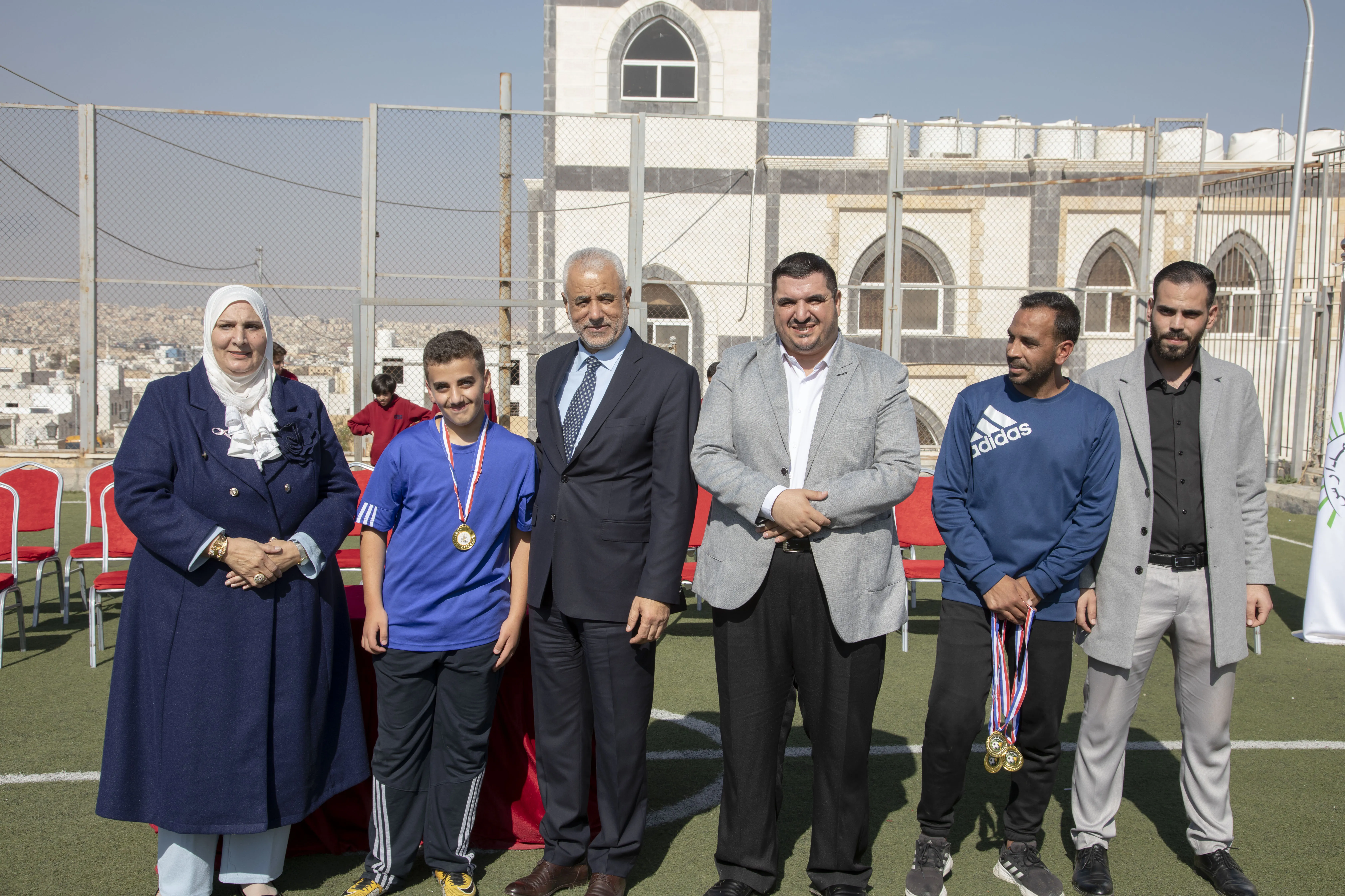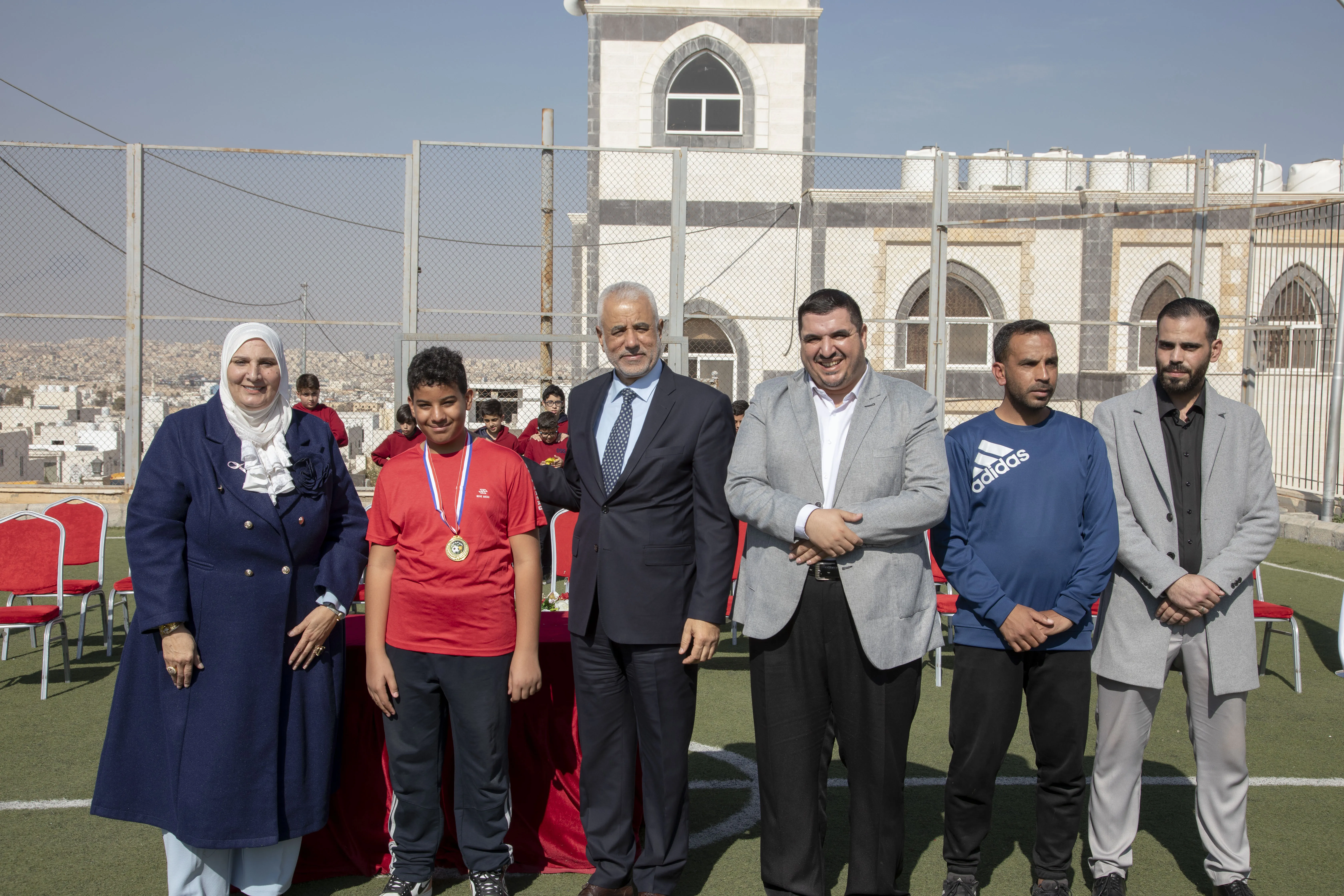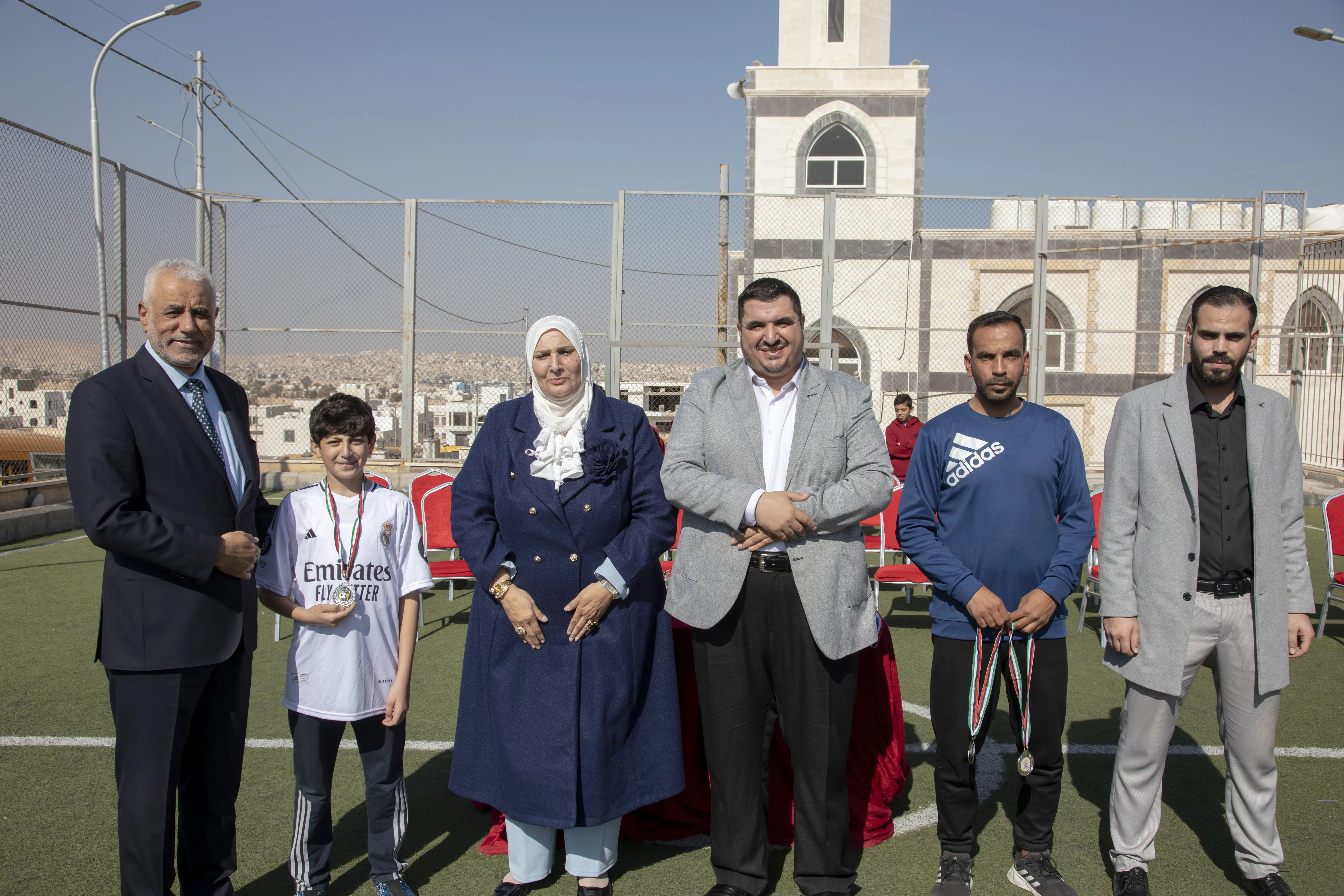 Amid a festive atmosphere, the 7th Grade "H" team was honored as the champion of the Al-Omareyah Champions League in football, under the gracious patronage of Dr. Hayam Ramadan, Board Member of Al-Omareyah Schools. This achievement came after a strong competition with the 7th Grade "J" team.